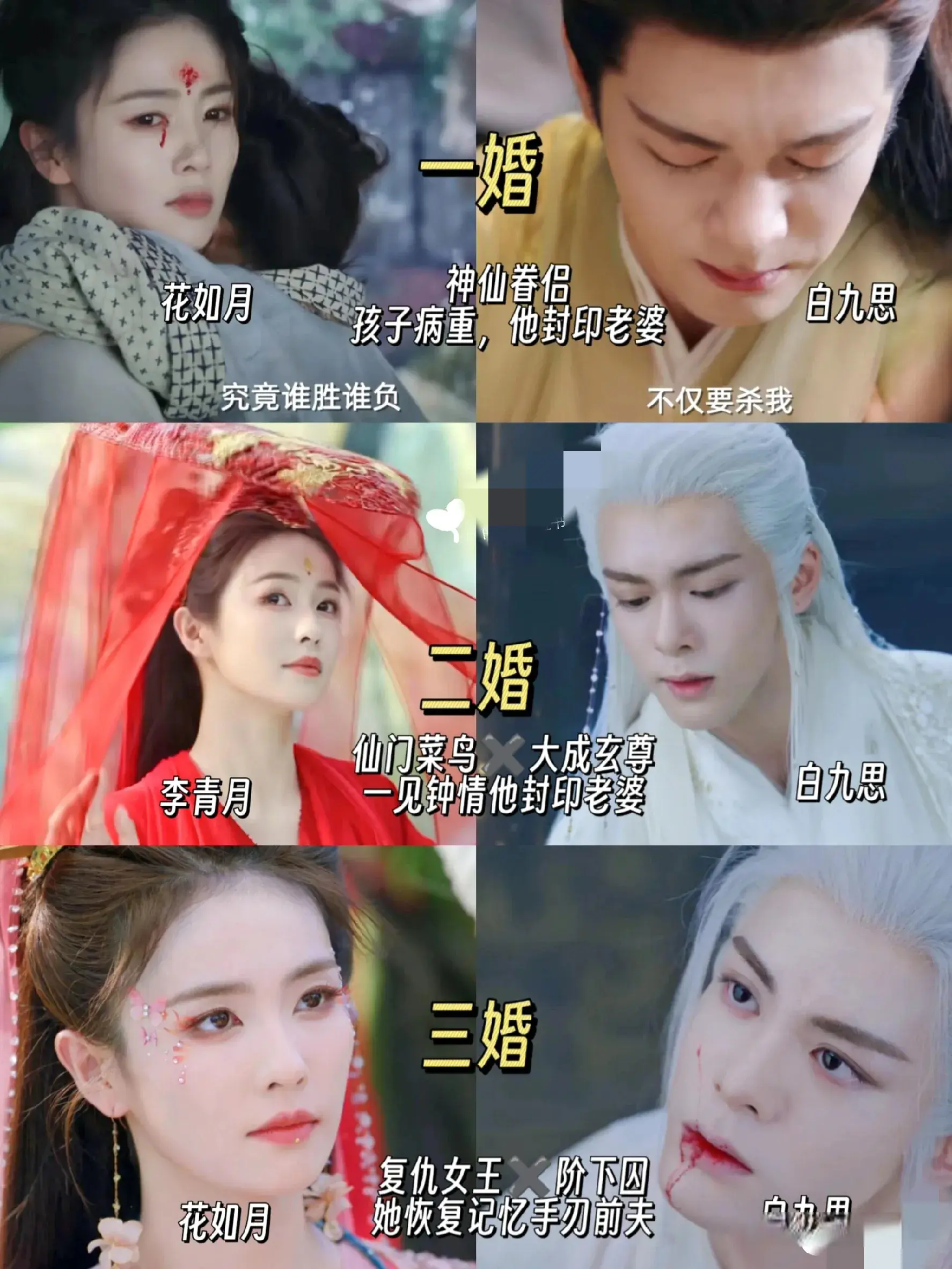 再来看剧情,与以往仙侠剧不同,它没有采用传统的“三生三世”爱情模式,而是以“三婚三离”的反套路剧情作为主线。这种创新还是给观众带来了新的观感。