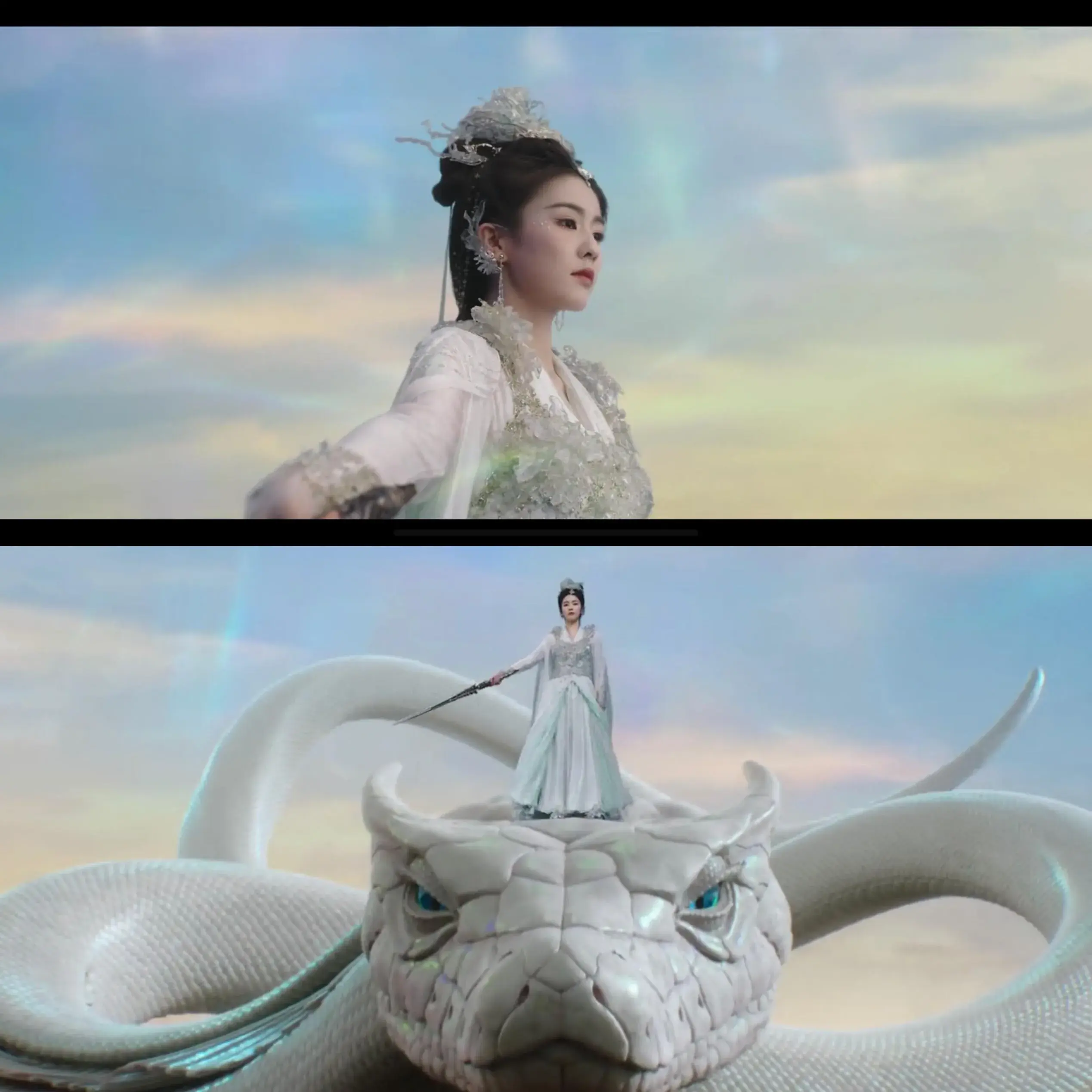 随着剧情走向,这部剧的吐槽也不少,有观众评论觉得像是在看短剧,下面这张图远景被网友吐槽像“太上老君抱着哪吒”后面的特效也是让人出戏。